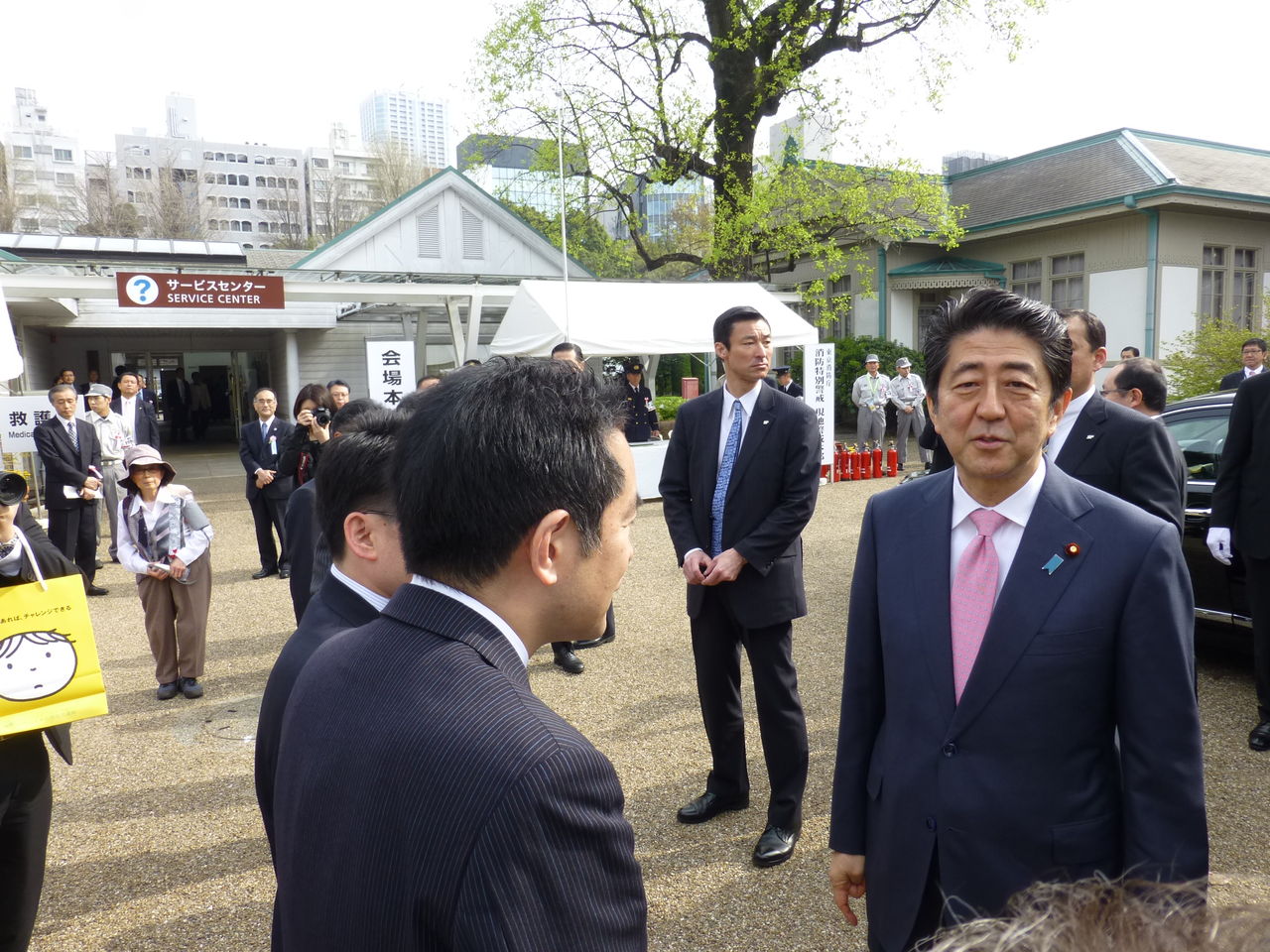 実は、新宿御苑は環境省が管理しています。そのため、今日は丸川珠代環境大臣の代理として、安倍総理大臣をご案内する大役を務めました。安倍総理は予定より大分早く到着されたため、しばらく待合室で一緒に懇談していましたが、良い天気に恵まれたこともあって、ご機嫌でした。