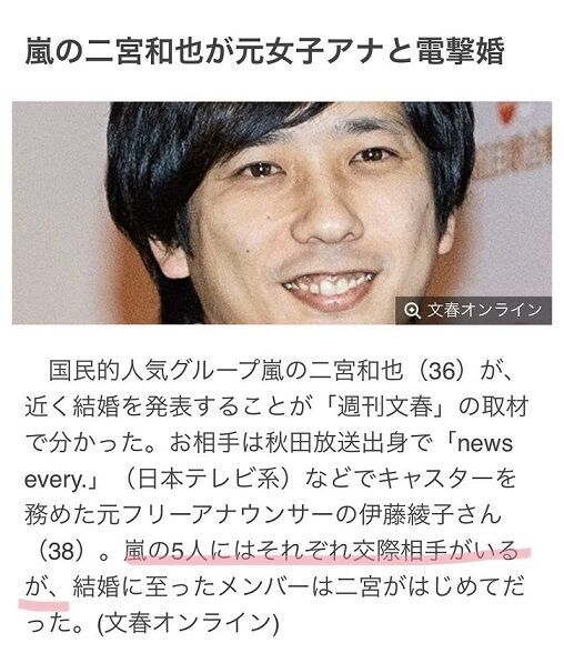 嵐二宮結婚で週刊文春しれっと爆弾置いてて草生える pic.twitter.com/D8gk8XWXWr