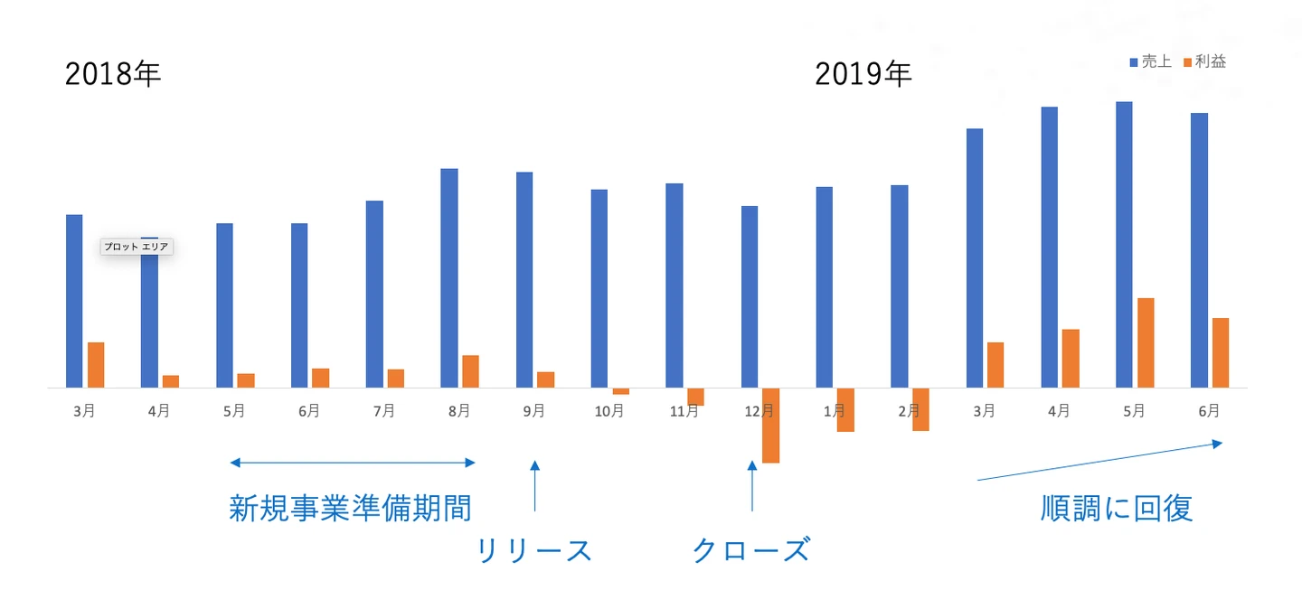 先述した売上と利益の図を見て分かる通り、実は新規事業中に赤字が大きくなるのではなく、サービスは閉じてからが勝負なのです。
