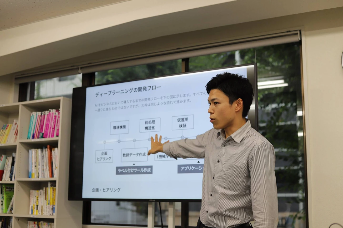写真:新入社員の教育に多くの時間を割く(彼は元英語教師で、今では執行役員に昇進)