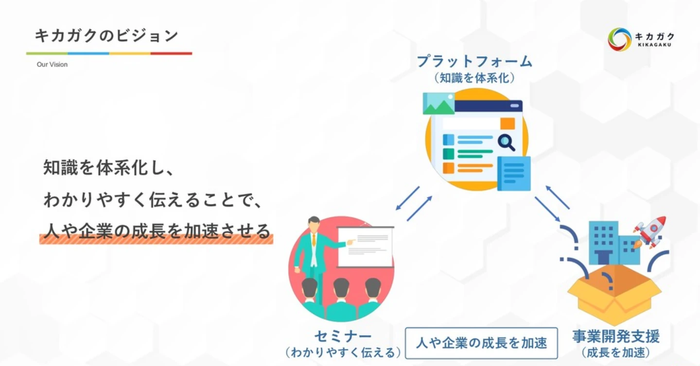 これからはわかりやすく伝えるセミナー事業を伸ばすだけでなく、もっと多くの人が勉強できる場を作るべく、知識を体系化して、それを公開していくプラットフォームを作成していきます。
