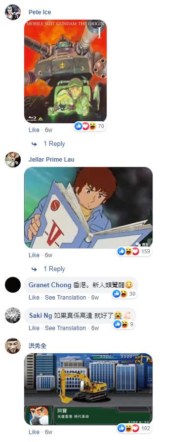 この人物はショベルカーのマニュアルをオンラインで読んだと伝えられており、香港の人気フォーラムであるLihkgなどでは1979年の名作SFアニメ「機動戦士ガンダム」を引き合いに出すコメントで溢れた。