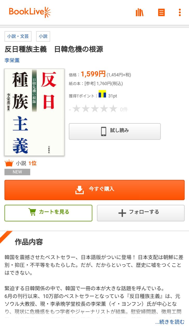 著者が韓国人の本がベストセラーになったのに、何の反応も無いのかよw