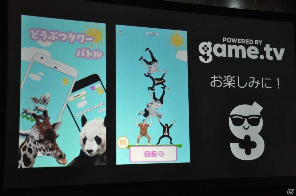 また、モバイルゲーム「どうぶつタワーバトル」と、ゲーム実況者の加藤純一さんのコラボレーションとして、「加藤純一タワーバトル 信者衛門杯 powered by Game.tv」の開催も発表。この大会では通常降ってくる「どうぶつ」が加藤純一さんになるというスペシャルなタワーバトルが楽しめる。上位プレイヤーには賞品もおくられる予定だ。