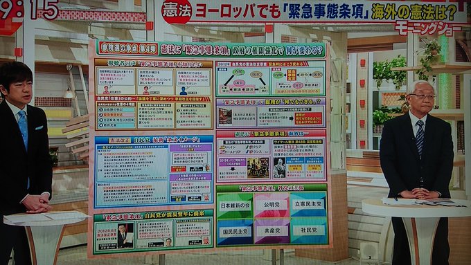 今日のモーニングショーでやっと緊急事態条項の危険について取り上げられました。