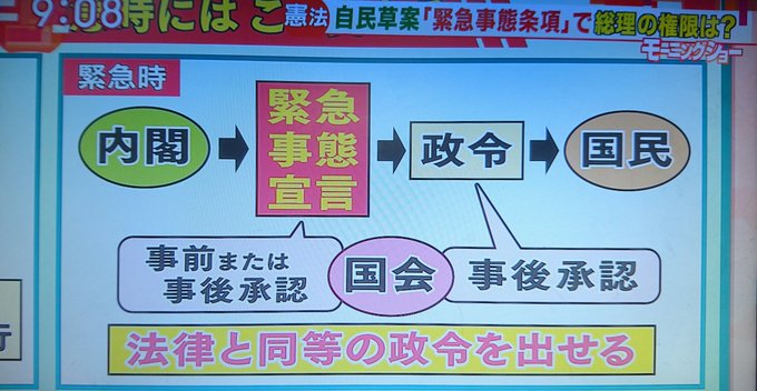 モーニングショーでようやく、緊急事態条項が取りあげられた・・・・総理大臣が緊急事態と宣言すれば何でもできる!!!!