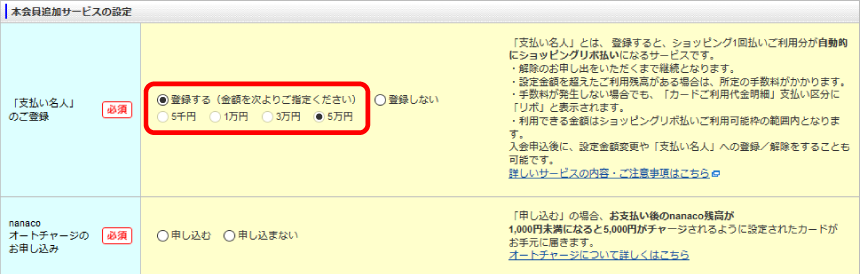 ※1 既にお持ちのnanacoを登録する紐付型も選択できます。