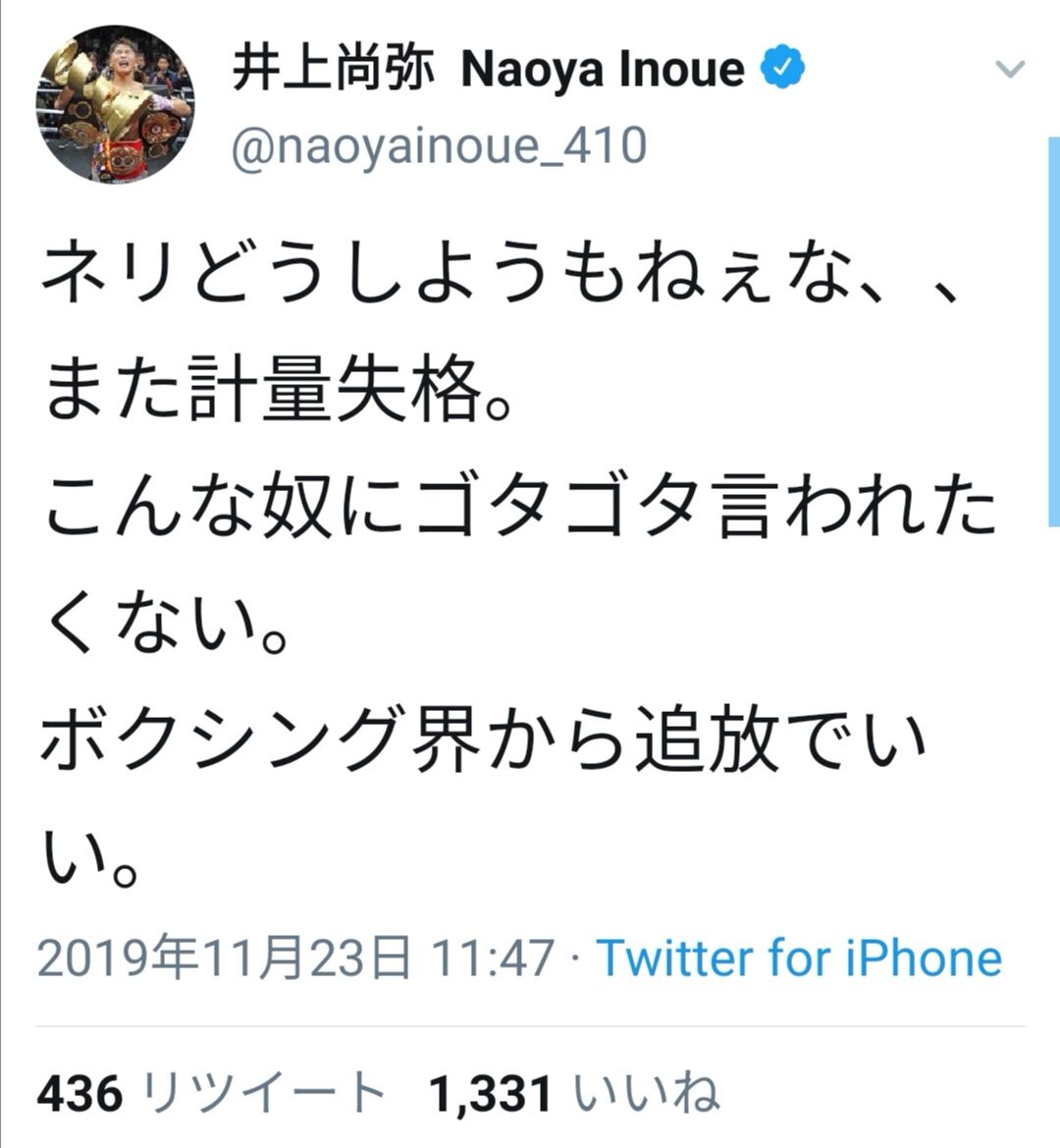 当たり前やんけ井上はこんなん相手にせず階級上げろや