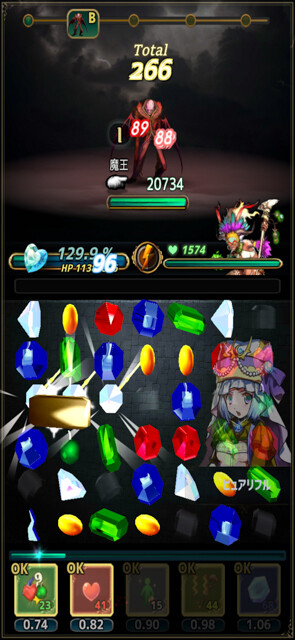 また、プレイヤーがジェムを指で消すたびにモンスター左のカウントが減り、カウントがゼロになるとモンスターは反撃してくる。このあたりは『パズドラ』などでお馴染みの方式。