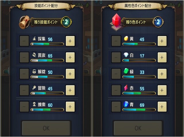 その他にもレベルアップ時に“探索”や“鍵開け”などの冒険向け能力を上げたり、新システムを開放したり、ショップの品ぞろえなどを増やす“ギフト”、モンスターを召喚して仲間にでする“石板”など、さまざまな要素があり、遊んでいる間に増え、戦術の幅が広がっていく。
