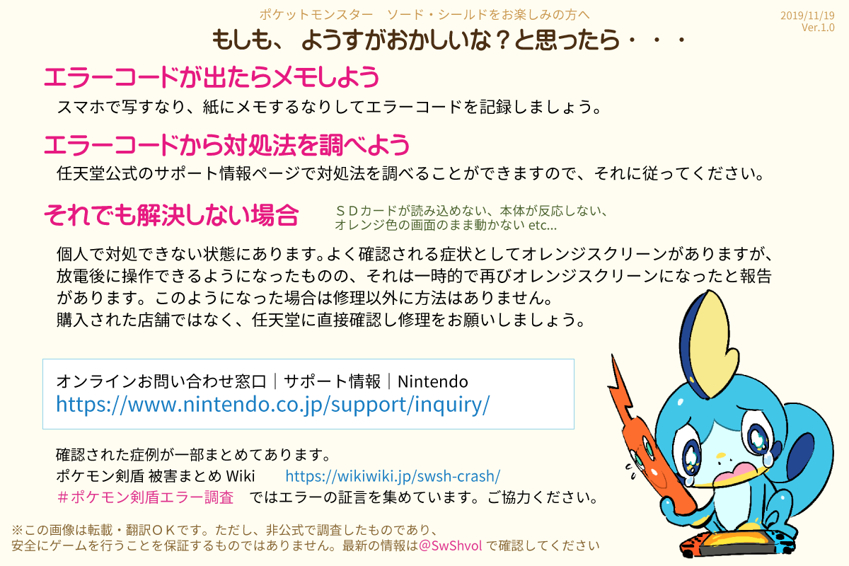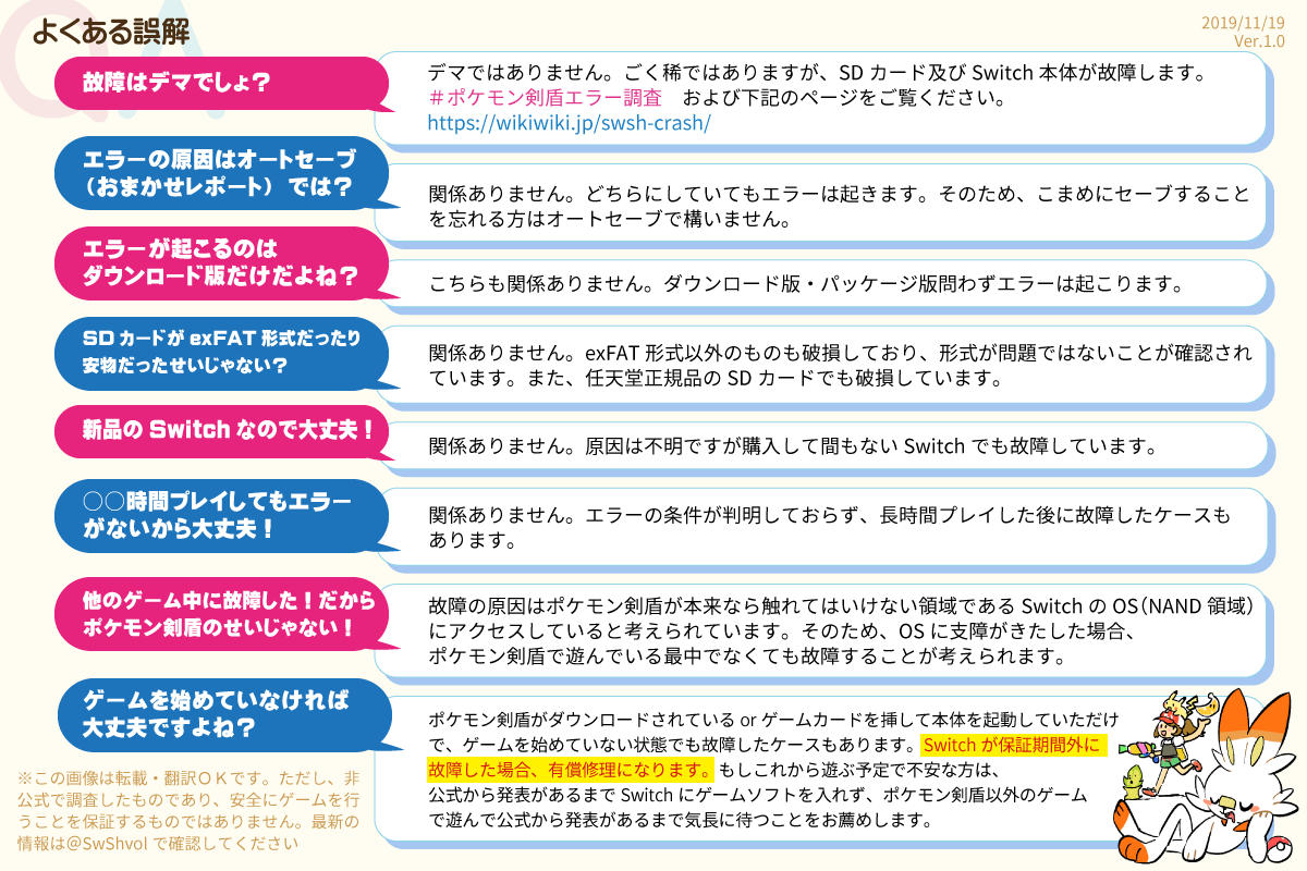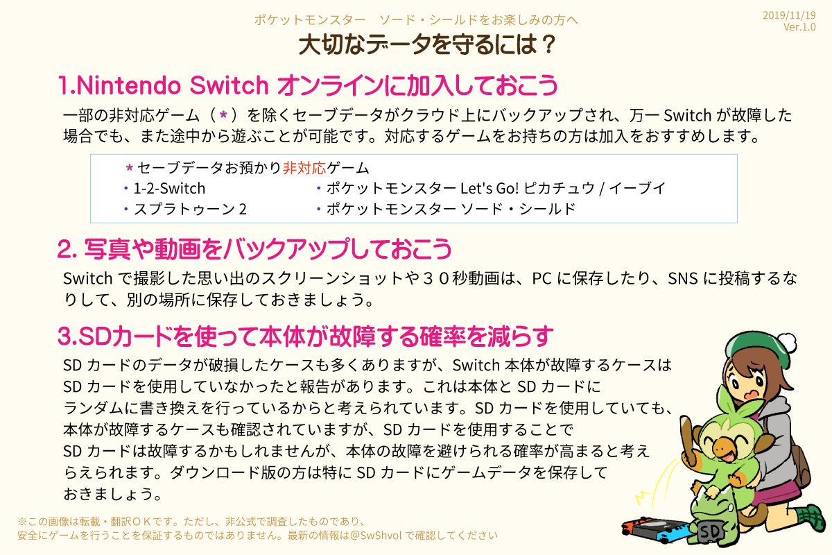 エラー・SDカード破損・Switch故障で騒がれているのでまとめました。ポケモン剣盾で遊んでいる人・これから遊ぶ予定の人はできたら読んでほしいです#ポケモン剣盾