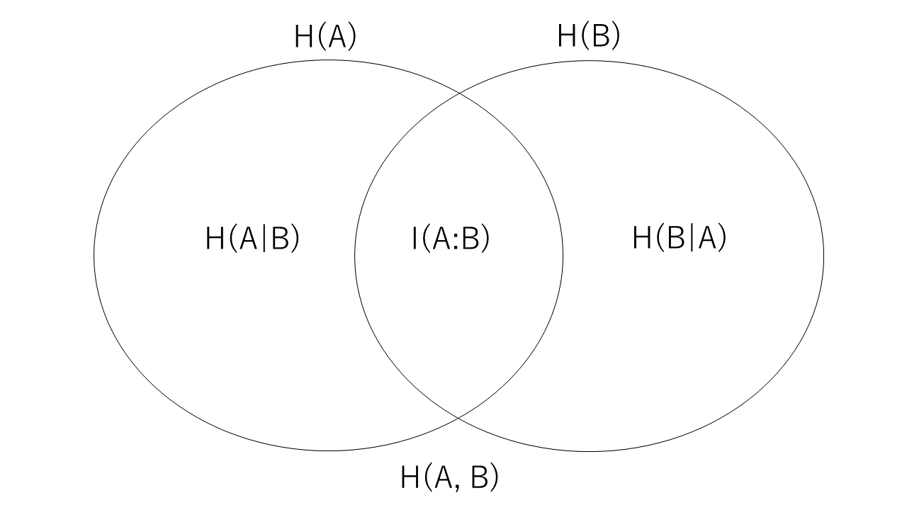 - (11) 相互情報量と各事象のエントロピーおよび結合エントロピーとの関係: