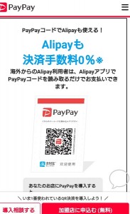 よく見るとPayPayの下に必ず「Alipay 歓迎使用支付宝」という簡体字中国語のメッセージが付いてます。