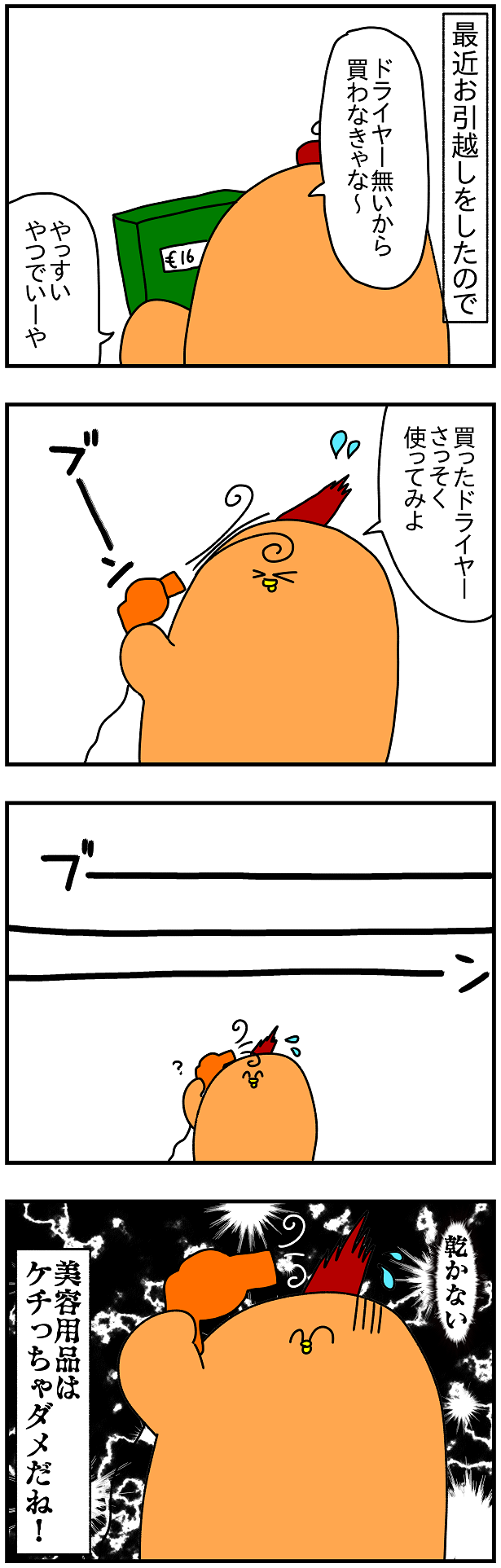 別に威力が弱いわけでも温度が低いわけでもないのになぜ乾かないのか謎…あれか?マイナスイオンとかが足りないのか?マイナスイオンがなにか知らんけど。