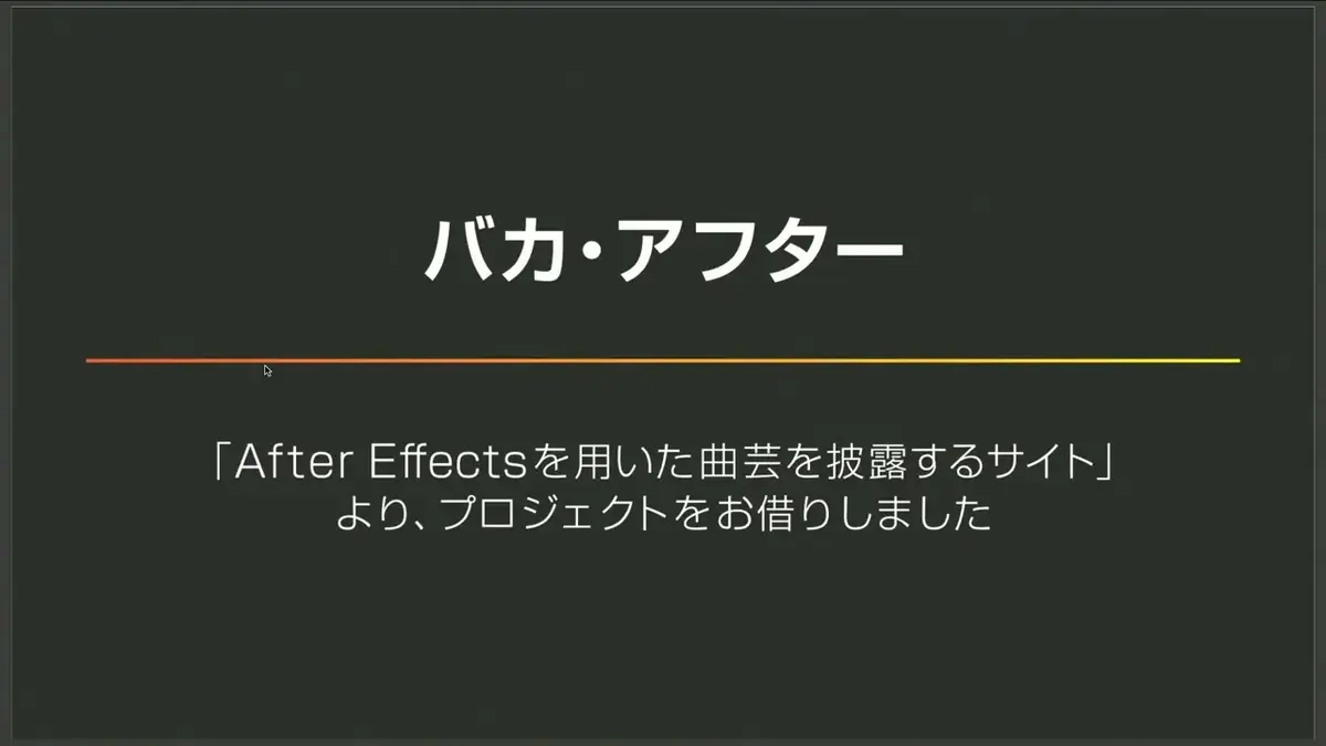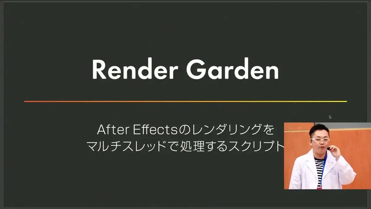 僕はAeレンダリング高速化⁉︎Render Gardenのススメというタイトルでご紹介しさせていただきます。