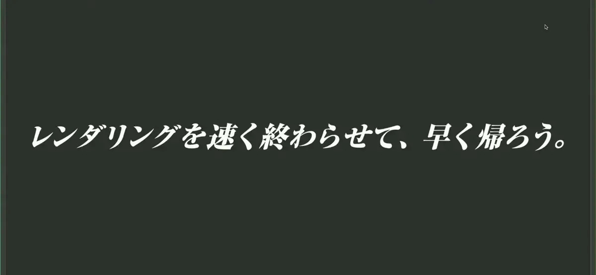 レンダリングを早く終わらせて、早く帰ろう。