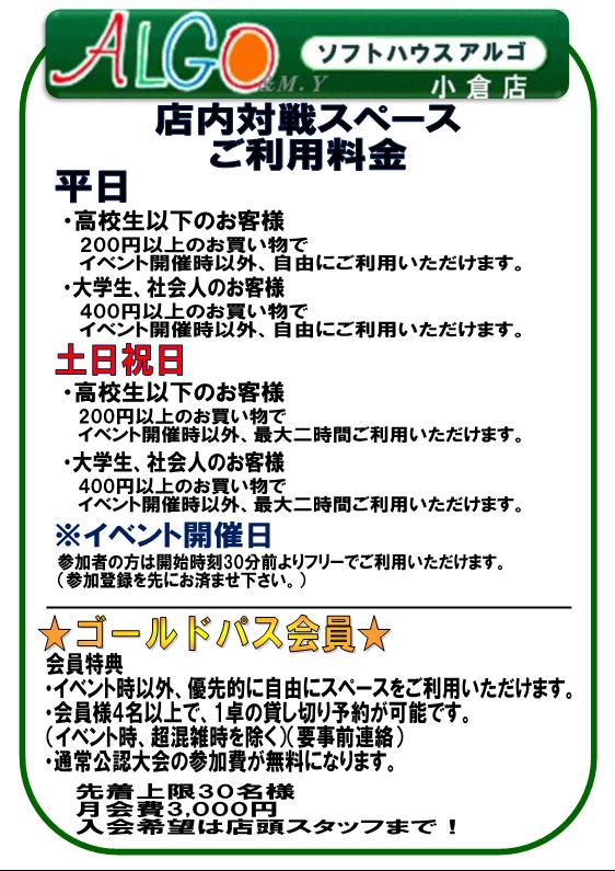 店内対戦スペース ご利用料金形態