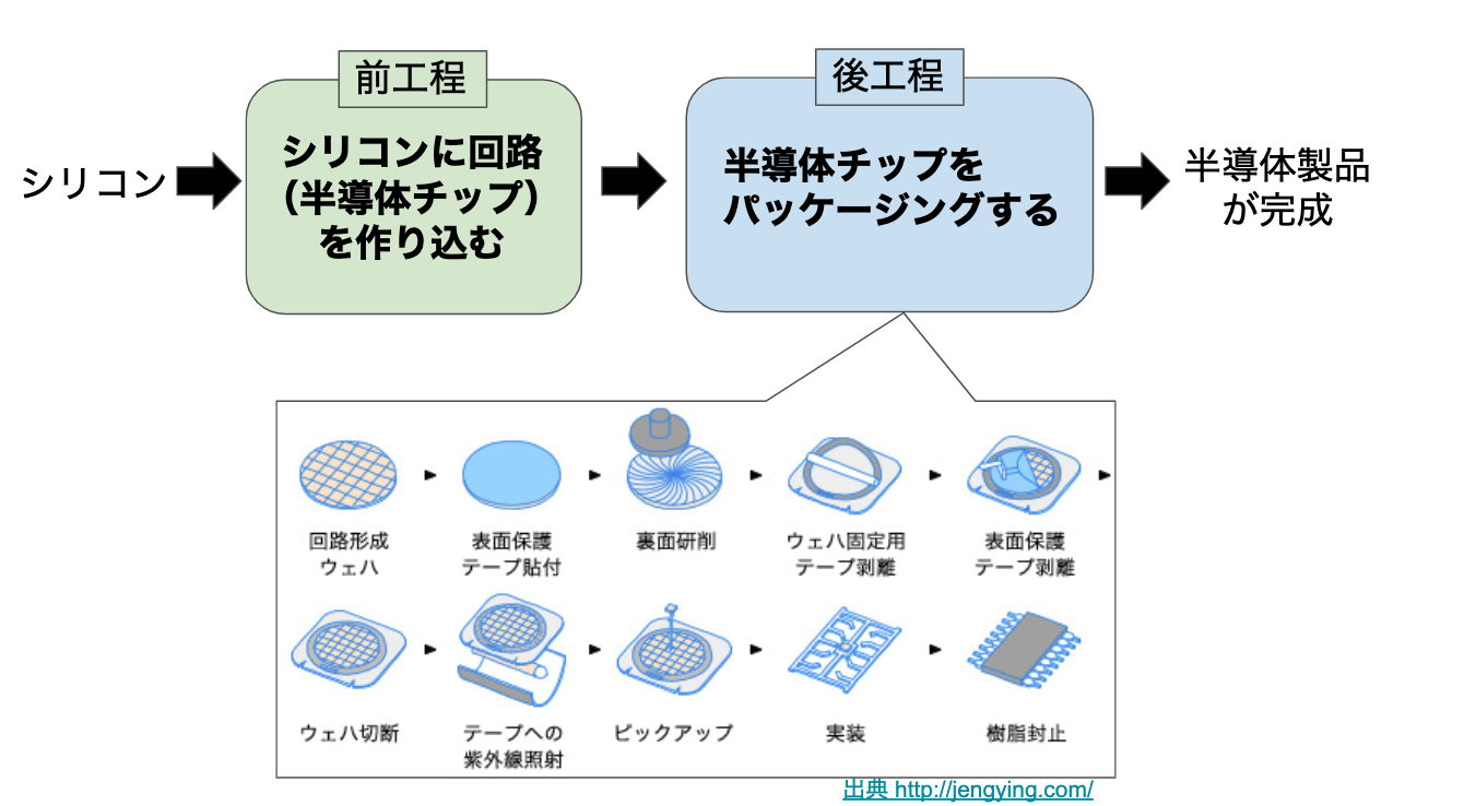 半導体製造には大きく分けて「前工程」と「後工程」があり、私が担当していたのは後工程です。シリコンから半導体チップを作る工程が「前工程」、半導体チップを半導体製品に組み込む工程が「後工程」です。この記事を読んでいる人のほとんどは馴染みないと思います(笑)。後工程の主たるプロセスは、金属ワイヤーでチップと電極を繋いだり、基板にチップを半田付けしたり、樹脂でチップを固めて保護したりです。求められる知識は多岐に渡り、材料物性(無機、有機)、材料力学、冶金学、信頼性工学などを使って仕事を進めます。ノウハウが物を言う領域なので、日本がまだ強い分野です。