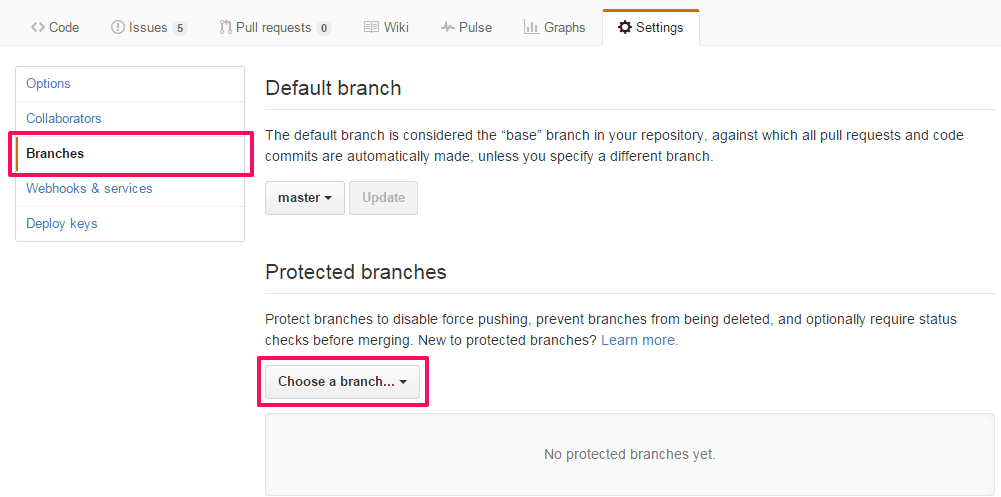 そこでmasterブランチをプロテクトしておく。