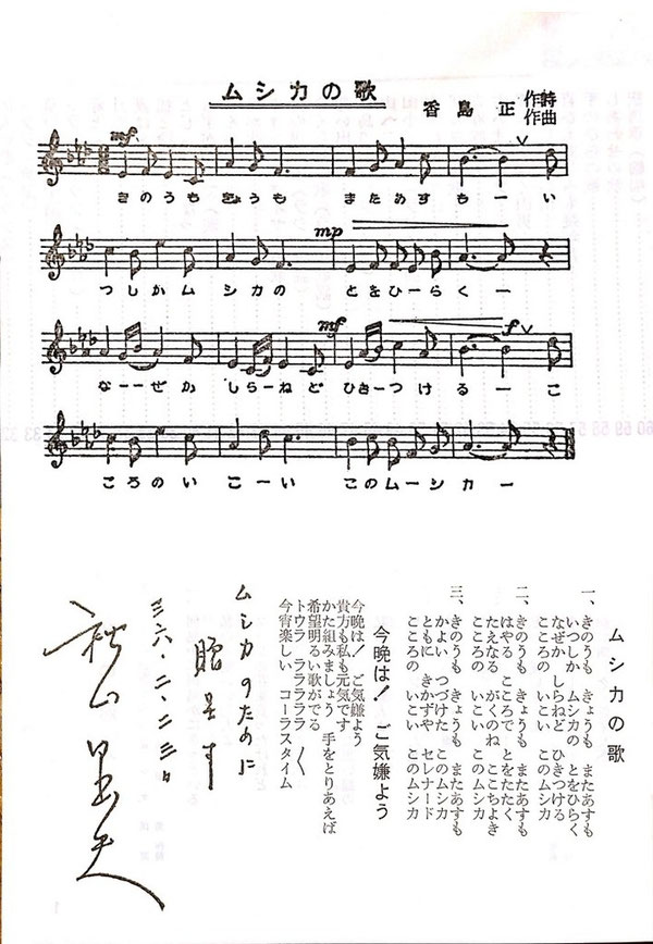 ムシカのうたごえ歌集には、「ムシカの歌」があります。