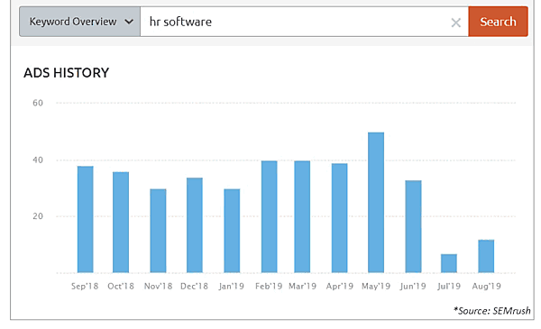 ツールはSEMrush、キーワードは「hr software」(人事ソフトウェア)
