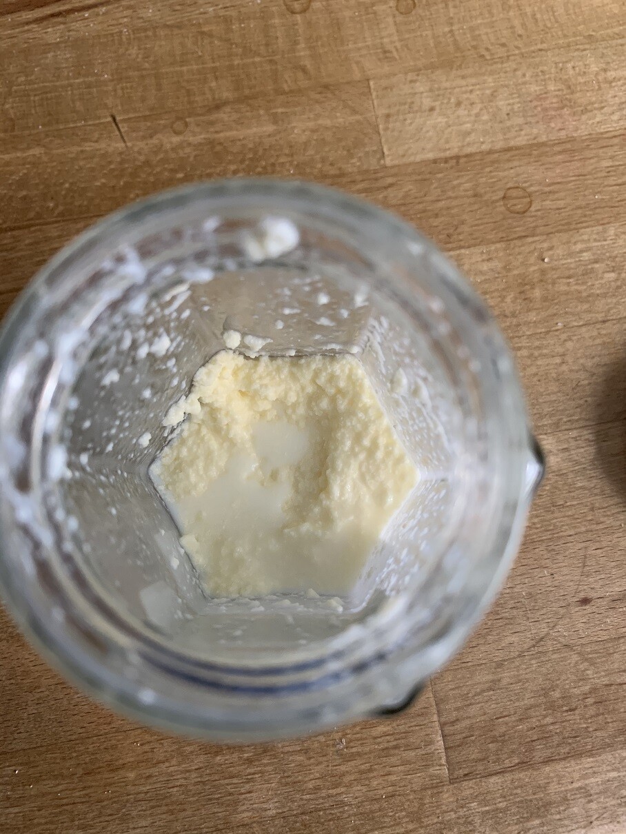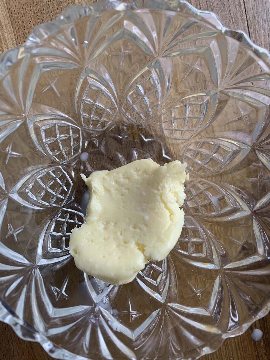 ↓出来たバター💛💛有塩バターが好きなひとはこれに塩を混ぜてね!