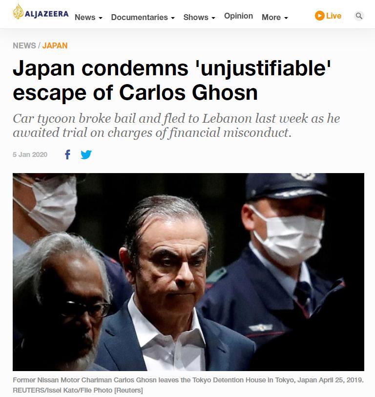 Japan condemns 'unjustifiable' escape of Carlos Ghosn - 2020/01/05