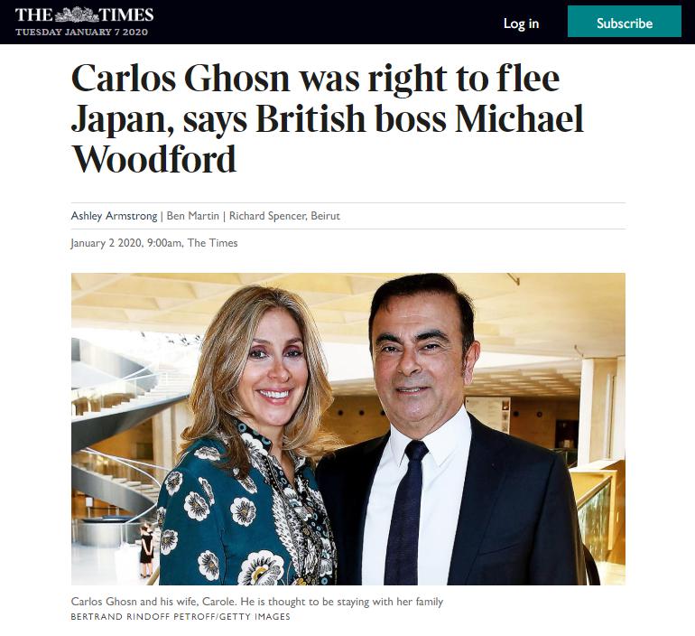 カルロス・ゴーンの保釈中の日本からの逃亡は彼の正当な権利であると、2012年に日本を揺るがした粉飾決算スキャンダル「オリンパス事件」で前経営陣の不正を暴いた事で知られる英国の実業家マイケル・ウッドフォードはタイムズ紙に語った。