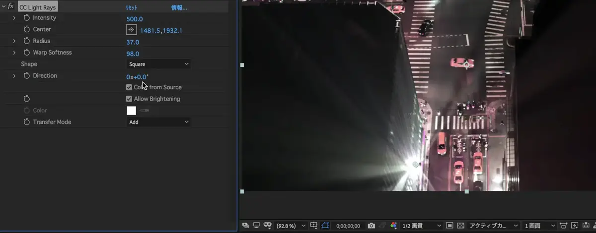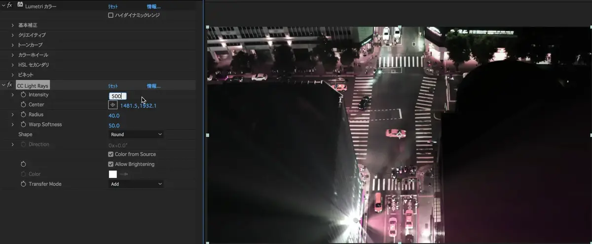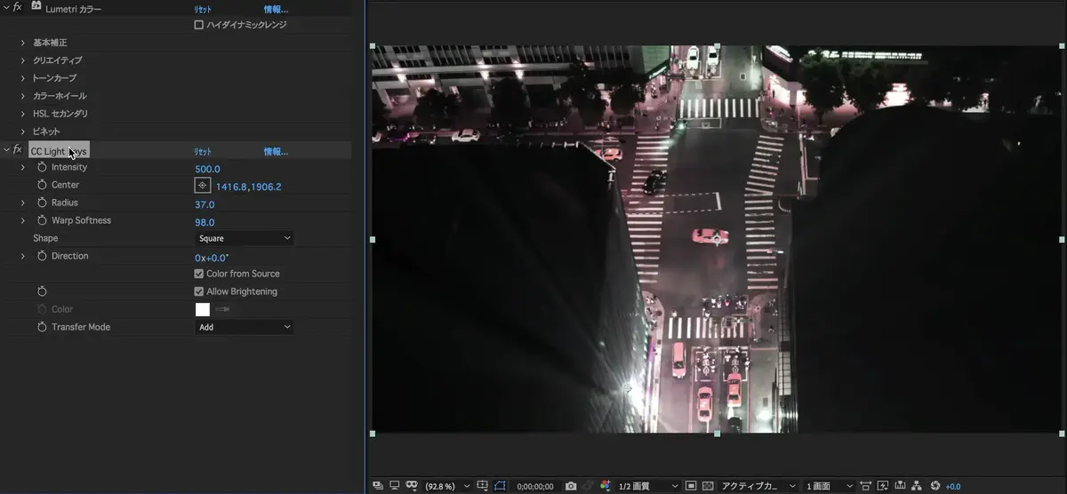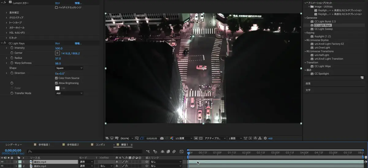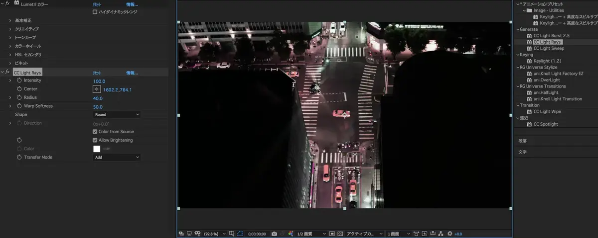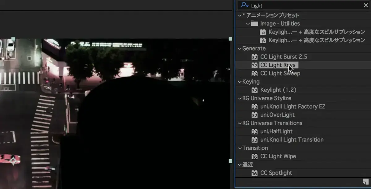 (CC Light Rays)を検索し、素材に追加。