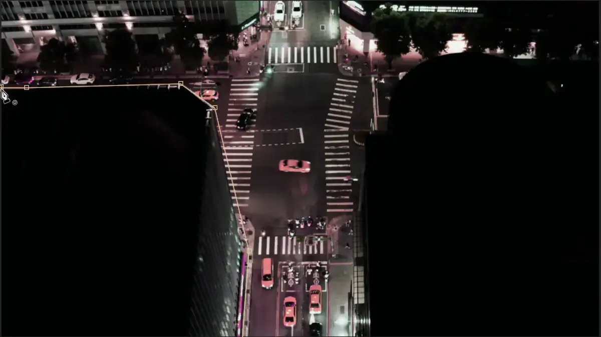 左下の建物を囲うようにマスクをかけていきます