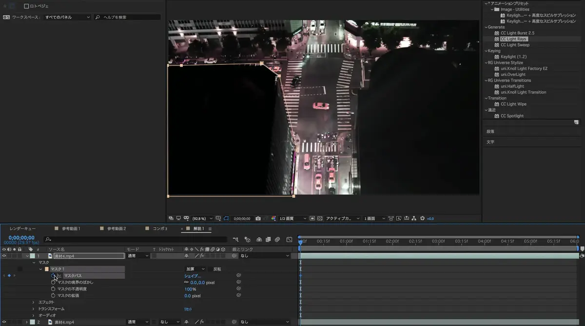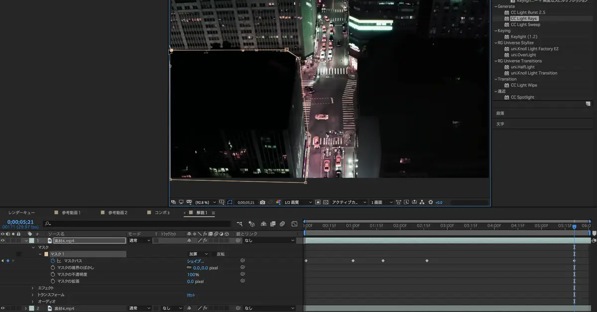 1)CC Light Rays&素材のマスクがけ
