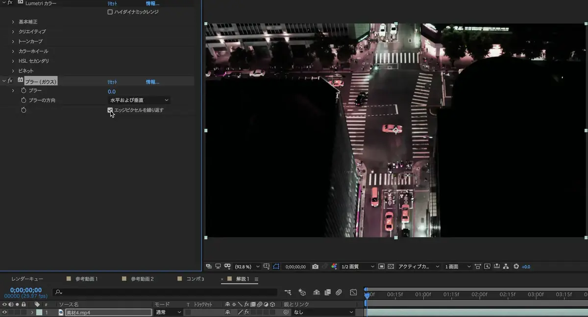 ブラー(ガウス)項目に進み、エッジピクセルを繰り返すをクリック。