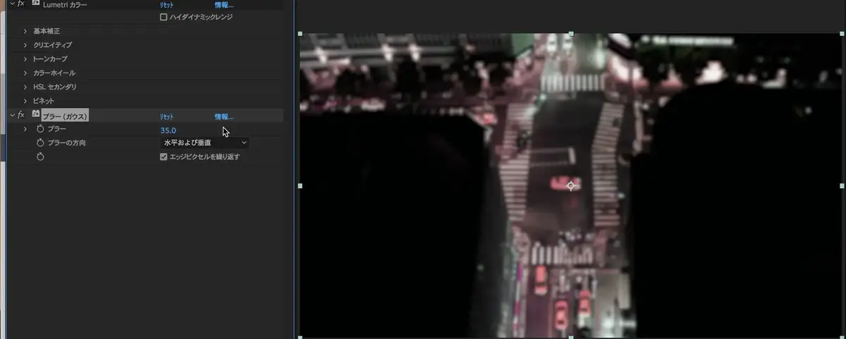 ブラーの値を映像を見ながら調整します。(僕は35で調整していますが、お好みで変更してください)