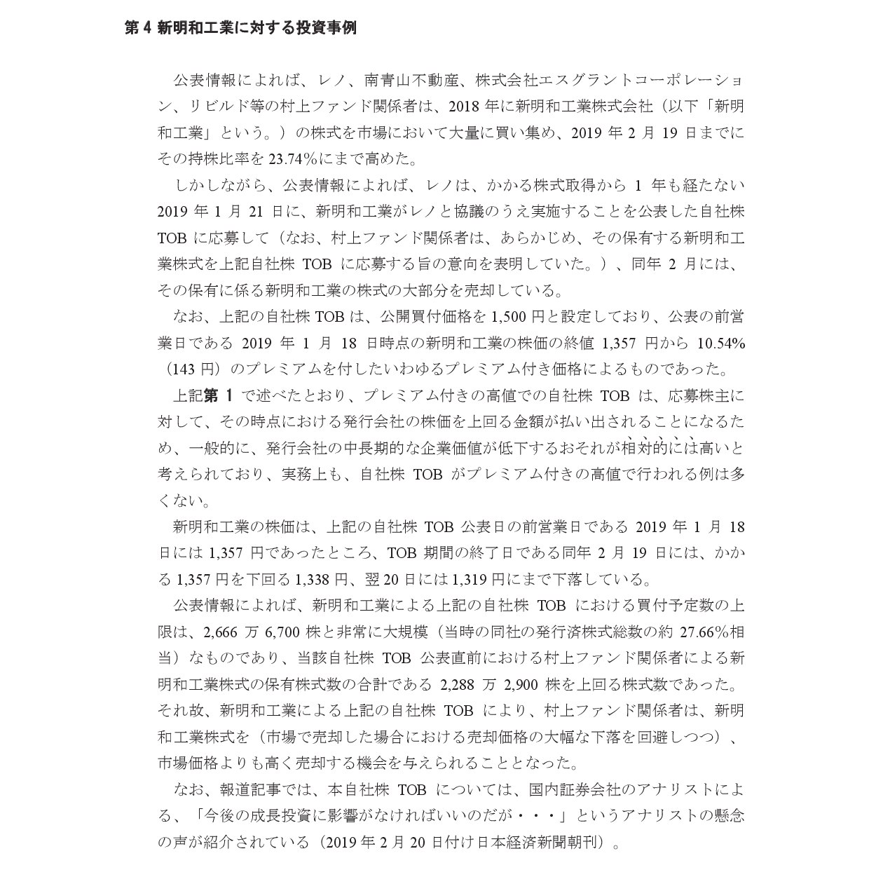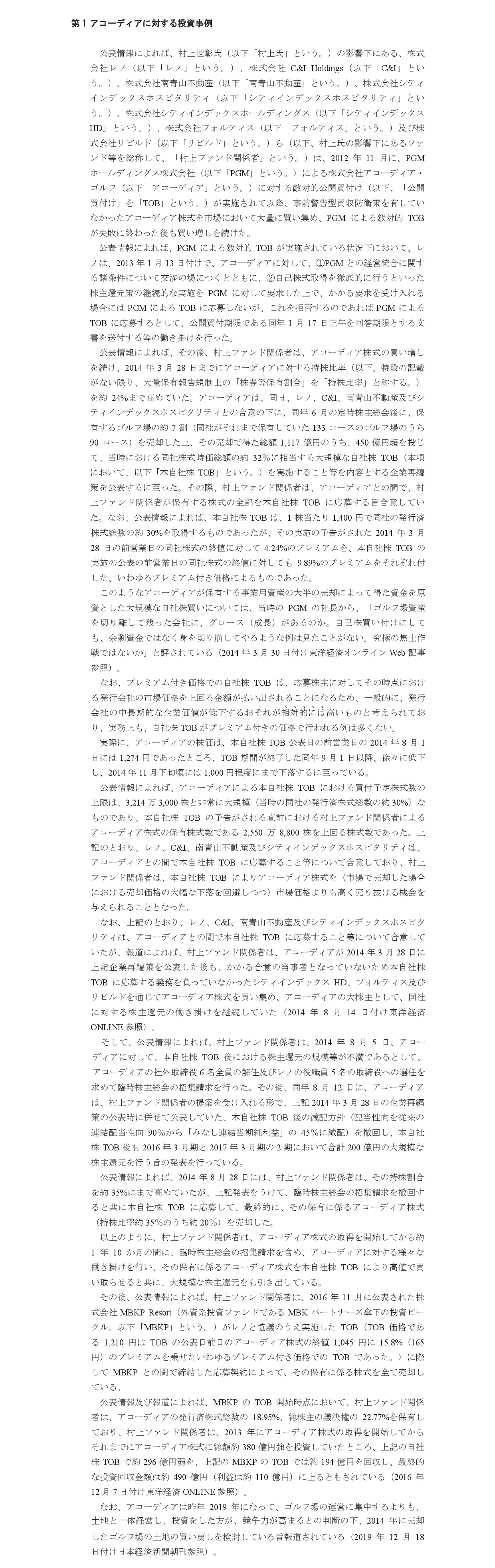 1/12 村上氏、書簡にてTOB検討の方針を伝達。守秘義務契約締結と2月上旬以降の面談を約束するなら一時延期と伝達