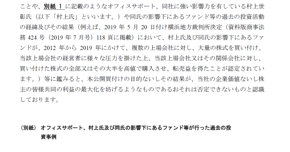 株式会社オフィスサポートからの当社株式を対象とする公開買付けの予告を受けた当社の対応方針に関するお知らせ