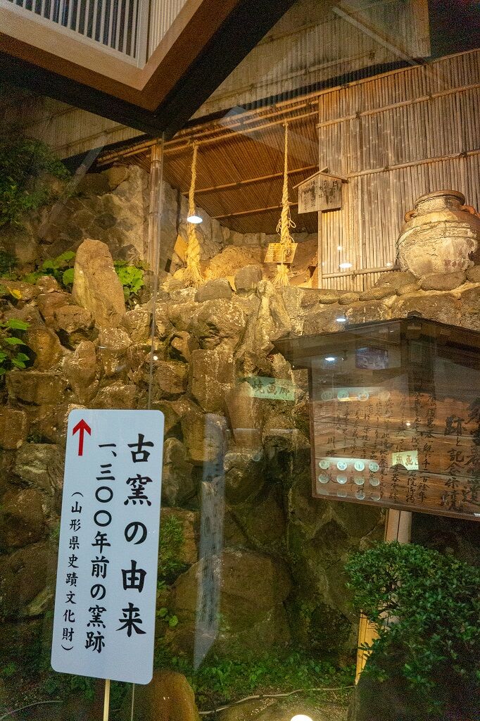 結局これ以外はあまり仙台観光せず,山形県に移動して旅館へ行き,当初のコンセプト通り早めにチェックイン。夏場で日が高いこともあり明るいうちに旅館の部屋に入るという,このメンバーの旅にしては珍しいことが起きた。この日に泊まったのは,かみのやま温泉の古窯。この旅館の開業6年目(1957年)に,敷地内で奈良時代の須恵器の窯跡が発見されたために改名したとのこと。須恵器というと当時の日本にあってはそこそこ高度な陶器であり,まだ蝦夷討伐事業も途中な辺境の出羽南部に,小規模とはいえ生産地があったというのはちょっとした驚きである。この地方の官人や郡司が使っていたのだろうか。この遺跡は旅館の地下1階に展示されているので,宿泊客は見ることができる。