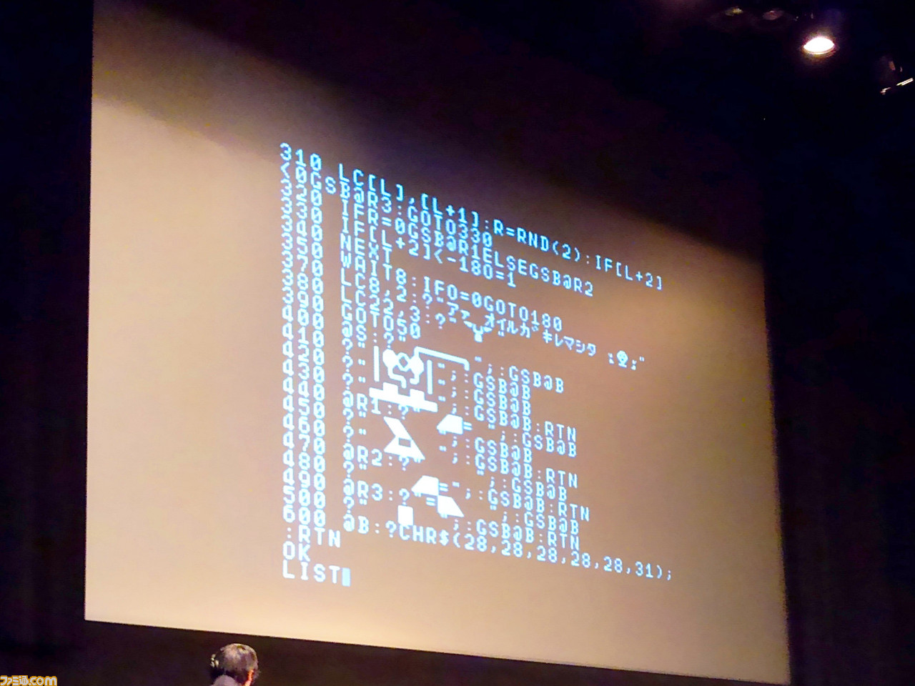 続いて、第2部のテーマは“スタープログラマー VS. ○○プログラマー”。スタープログラマーとは、投稿プログラムが何度も採用されていた常連読者のことで、森巧尚氏(ベーシックマスターユーザー)、“Bug太郎”こと谷裕紀彦氏(PC-8001ユーザー)、ファミベのよっしん氏(ファミリーベーシックユーザー)の3名がステージへ上がり、当時のプログラムを実演した。現在は3名とも仕事でプログラミングに関わっており、このうち森氏と谷氏はこの日のために新作プログラムを用意。進化した技術力で客席を沸かせた。