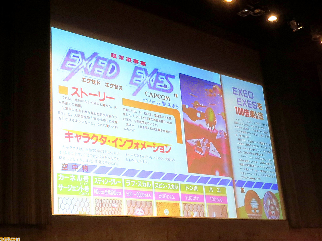 その後も長きにわたり、アーケードゲーム関連記事の豊富さが特色となっていたベーマガ。“響あきら”こと池田雅行氏は、取材で仲よくなったカプコンの岡本吉起氏(現・株式会社オカキチ代表取締役兼ゲームプロデューサー)に「ふたり同時プレイできるシューティングゲームを作ったらどうか」と提案したことで、『エグゼドエグゼス』が生まれたという逸話を紹介した。