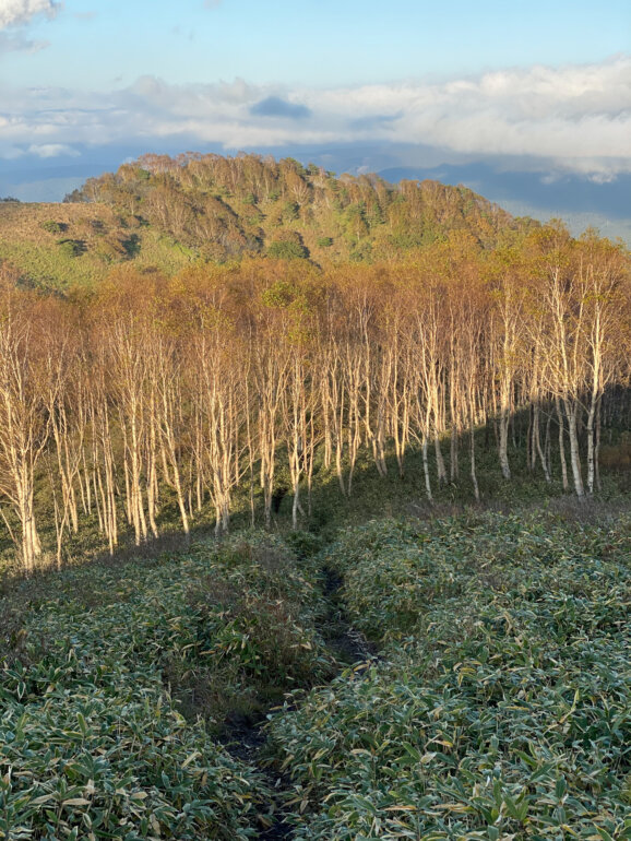 上から光が注ぐ昼に比べ、日が傾き始めると山を彩る様々な木や草、岩に凹凸や陰影が生まれます。