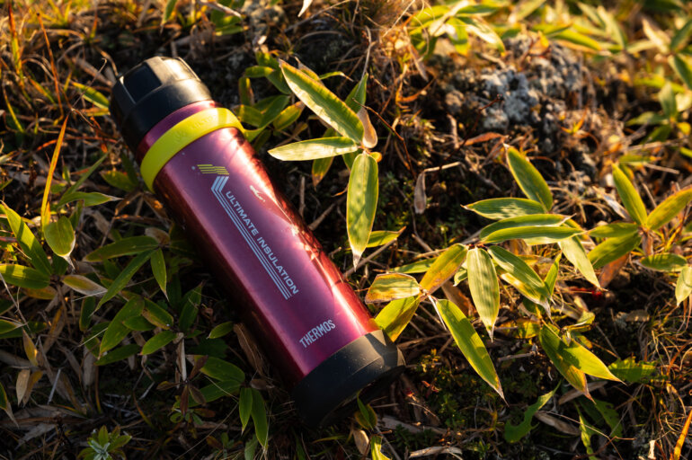 写真撮影は運動量の低い時間が出てきてしまうので、状況が悪いとウェアを着込んでも体温を維持するのが難しくなります。現場で簡単にできる対策はお湯を摂取することです。
