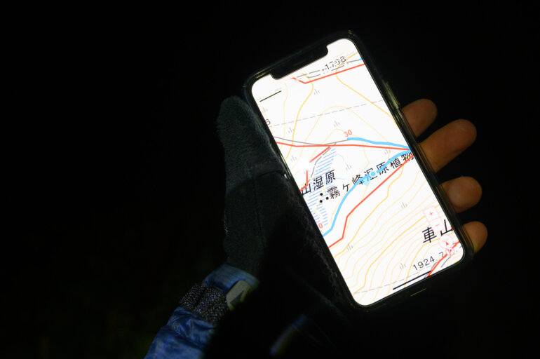 電子機器である以上頼り切ることはできませんが、スマホでYAMAPのようなGPS連動の地図アプリを使用することで現在や目的場所までの距離を確認できるため不安を解消できます。