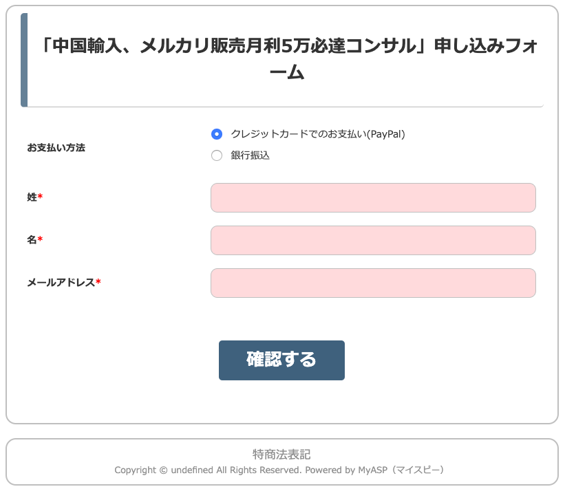 お申し込みフォームのように見えますが、決算方法を選択させている時点で、