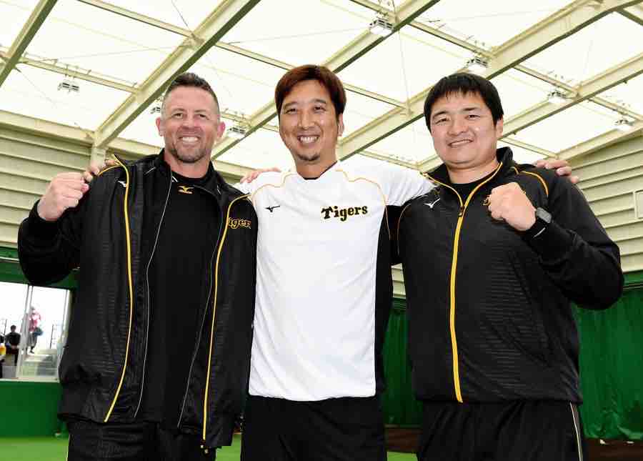 この日、藤川球児投手、阪神プロスカウトの久保田智之氏、そしてジェフ・ウィリアムズ駐米スカウトがブルペンで顔を合わせ、肩を組んで記念撮影を行った。