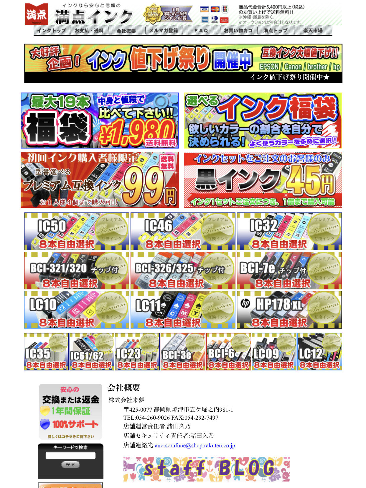 問い合わせメールアドレス 店舗連絡先:auc-sorafune@shop.rakuten.co.jp