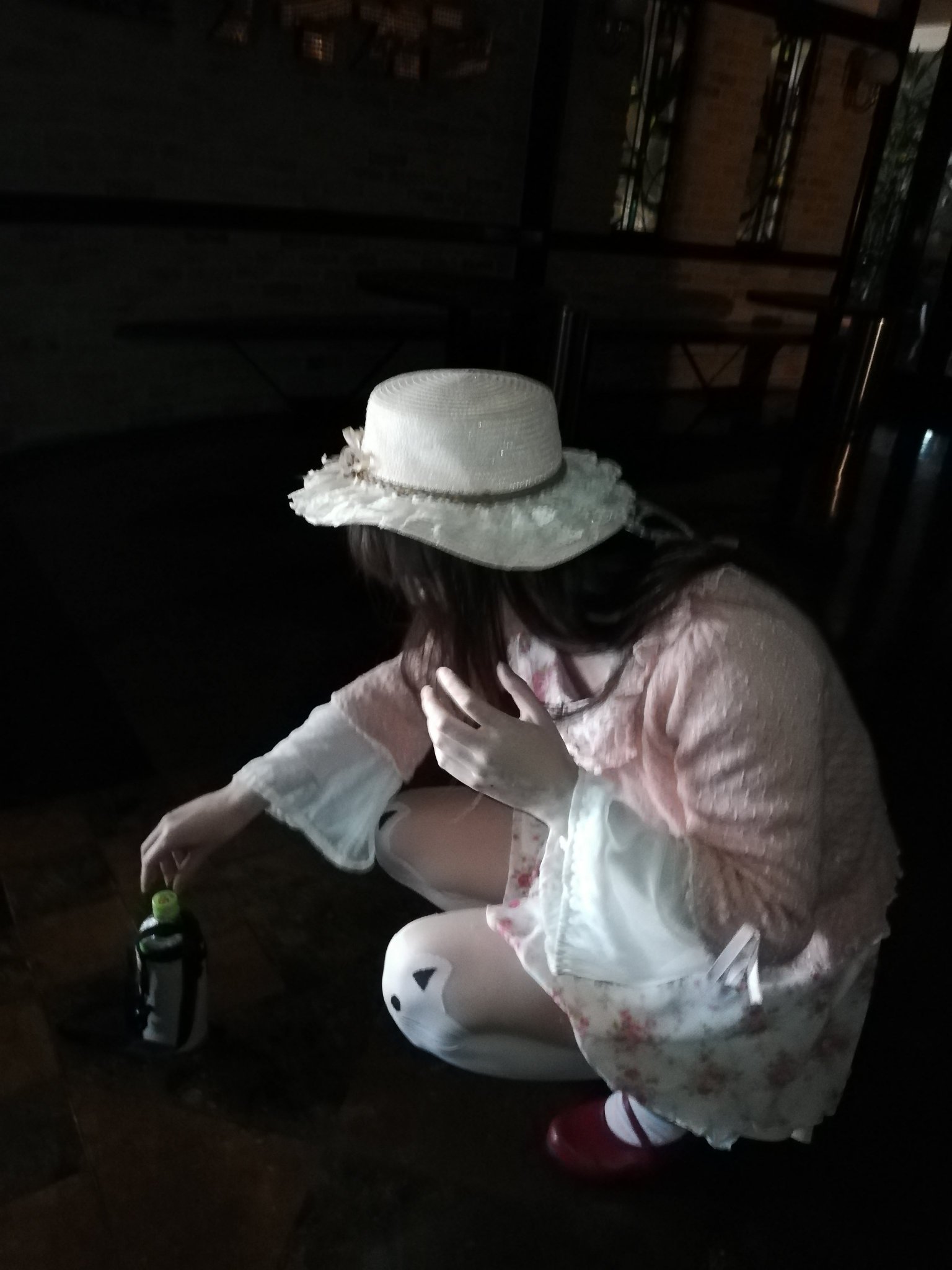 1枚目:恐る恐る酒瓶を撮るごっこ。