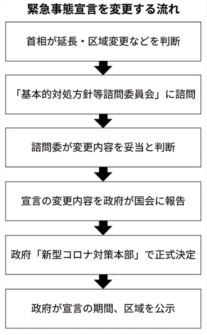 感染者が少数にとどまる県では全国を対象としたまま延長することへの慎重論もある。佐賀県の山口祥義知事は29日の全国知事会会合で「(感染者が多い)都市部に合わせるのではなく、地方それぞれの特性があっていいのではないか」と発言した。