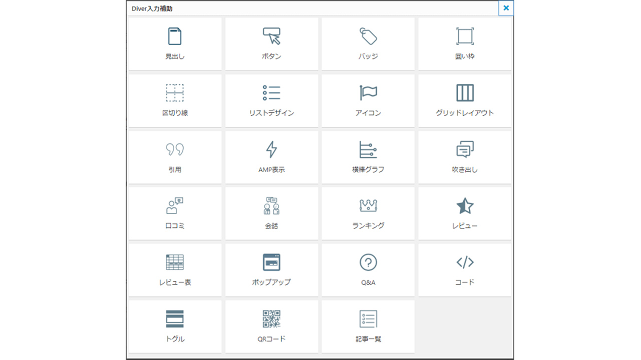 次に、Diverで使用できる便利な記事パーツを一部紹介していきます。
