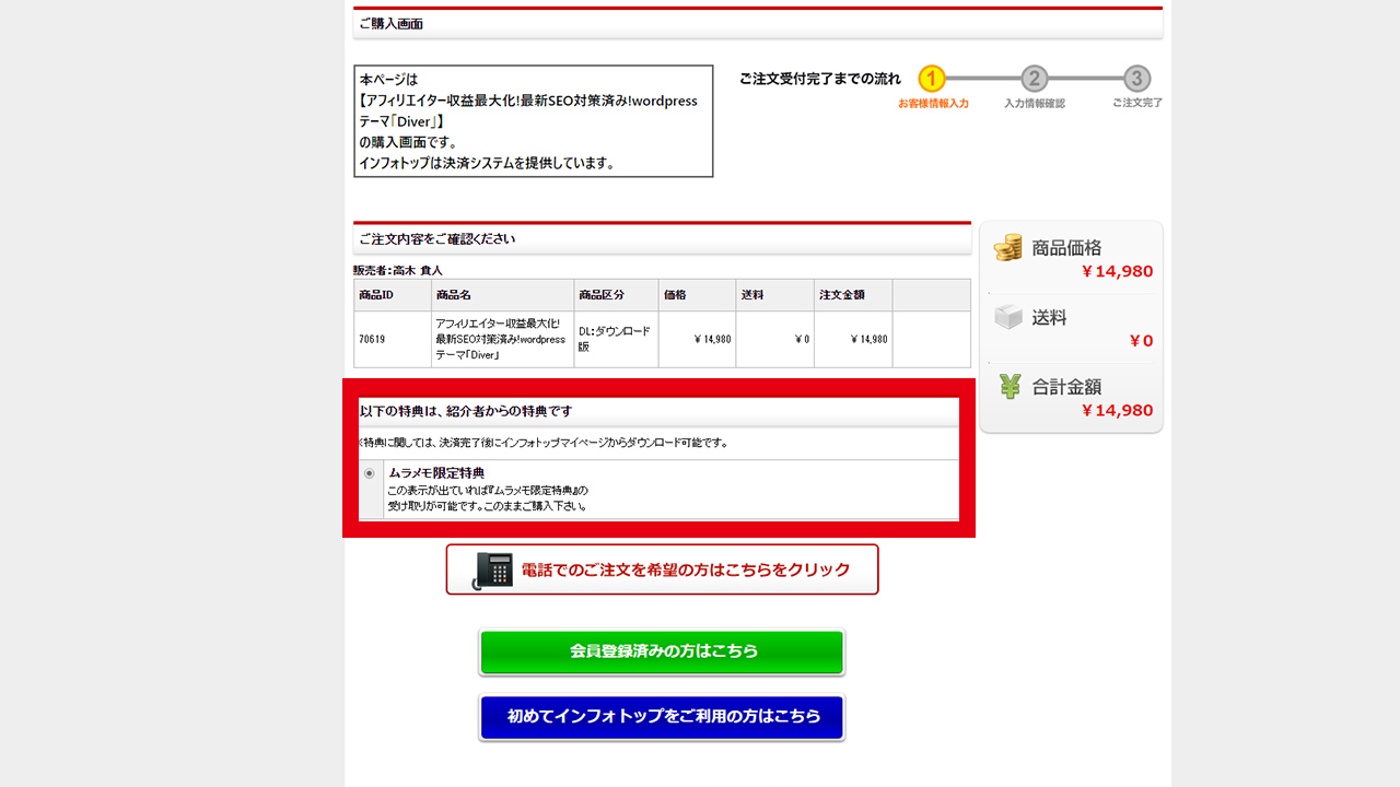 『ムラメモ限定特典』の表示がされていることを確認し購入手続きに進んでください。