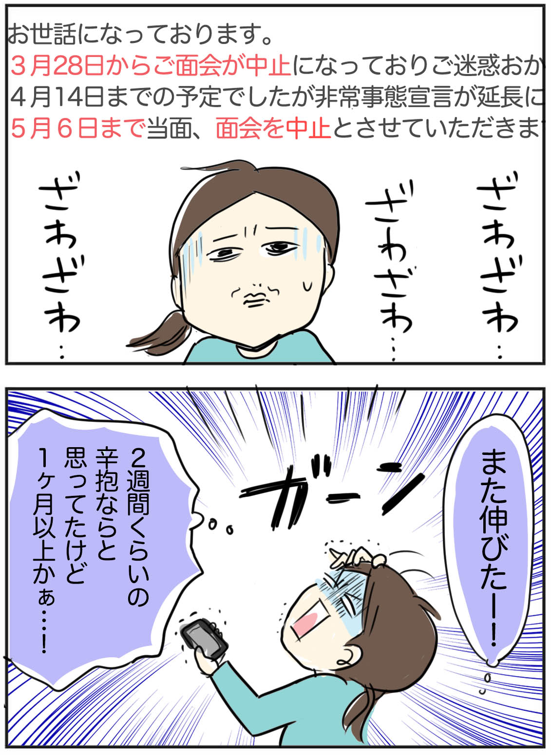 延長、延長でもう1ヶ月以上はまるっと会えてない。会話できない母にとって、家族の面会は一番の薬になると思ってます。