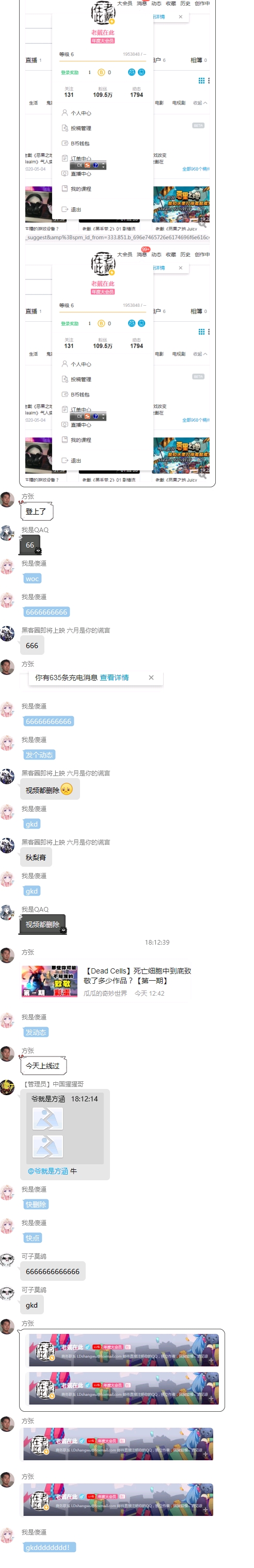 置顶经过查证,他已经通过b站登录协议,盗取了5-6k人的b站账号,并且拿去卖
